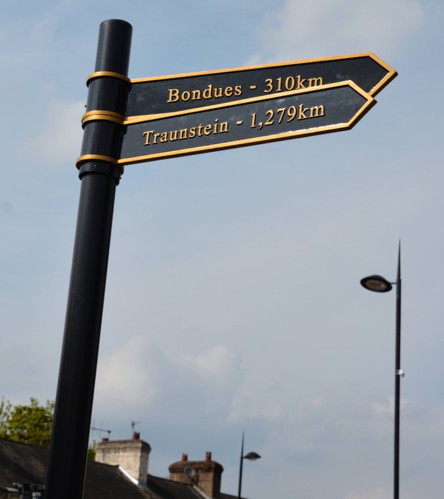 Im Zentrum von Haywards Heath, direkt gegenüber dem legendären Pub „The Star“ wurde kürzlich ein neues Signpost eingeweiht. Auf zwei Schildern sind die Namen der beiden Partnerstädte, Traunstein und Bondues zu lesen und wird die Entfernung in km genannt. Ins französische Bondues sind es nur 310 km, nach Traunstein 1.279 km.